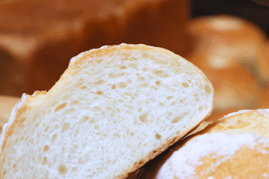 チャバタを作るにはとても良い粉で、美味しくできています。ミキサーを使わずに水と合わせ、手でこねるほどでもなく、パンチだけでつないで作っています。チャバタは多加水で作るのが特徴ですが、この小麦粉はよく水を吸ってくれるので、もちもちとした感じで美味しく仕上がります。